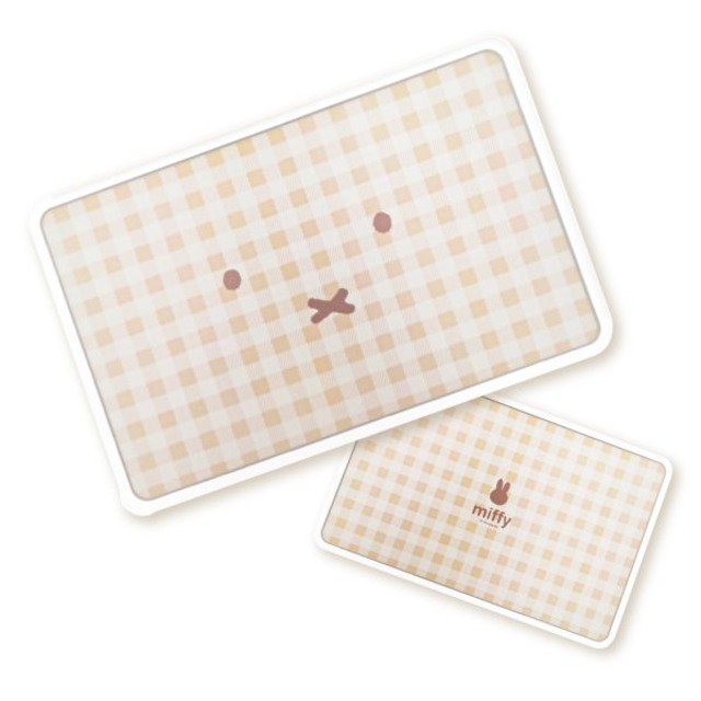 ミッフィーのお顔シリーズよりカッティングボードが登場しました!ギンガムチェックにお顔が描かれたデザイン、お色はベージュとグレーでキッチンのインテリアを邪魔しません。耐熱温度は90℃、食洗器、漂白剤OK!滑りにくいストッパー付きで安心。ガード付きなので、食品がこぼれにくく、刃先が当たらず安全です。信頼の日本製です。