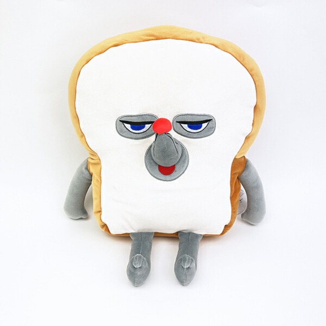 まちのパンやから サササッと とびだす ひとつのかげ。 パンが パンをかついで にげていきます。 「おれは パンどろぼう。おいしいパンを さがしもとめる おおどろぼうさ」のパンどろぼうのクッションです。柔らかくまるでパンのような触り心地♪デスクワークやリラックスタイムにギュッと抱きしめてみませんか♪小さいお子様のお昼寝の枕としてお使いいただけます◎