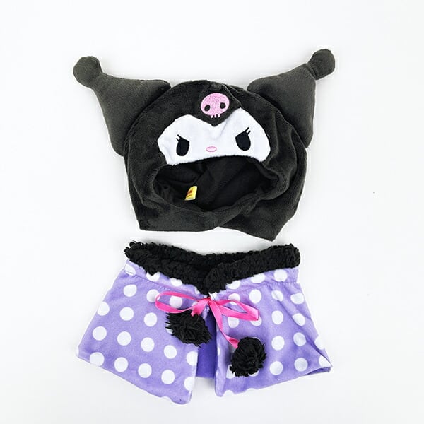 クロミちゃんの頭のかぶりものとポンチョのセットです。色々なぬいぐるみに着せて楽しんじゃおう!