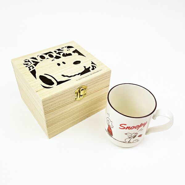 スヌーピーとチャーリーブラウンのレトロなイラストがかわいいマグカップです。スヌーピーが透かし彫りされた木箱入りでプレゼントにぴったり♪◆電子レンジOK【容量】300ml