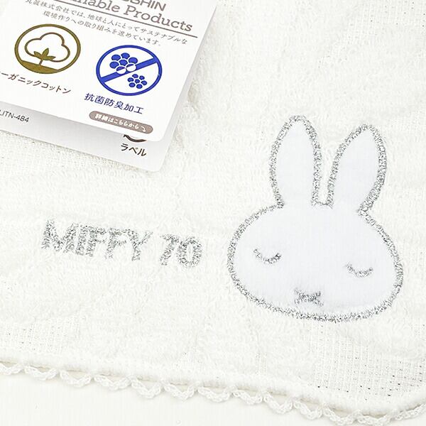 ミッフィーの70周年を記念したデザインのオーガニックコットンミニタオルです。キラキラの刺繍がとっても華やか☆高級感のあるハンカチなのでプレゼントやギフトにもおすすめです♪