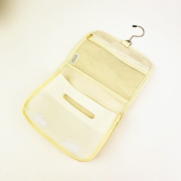 フタを開けるとフックに掛けられるひつじのショーンのハンギングポーチです♪自宅や旅行先で大活躍◎中はメッシュ素材なので中身が見えて、濡れてもすぐ乾く♪シリコンポーチはマジックテープで取り外し可能◎