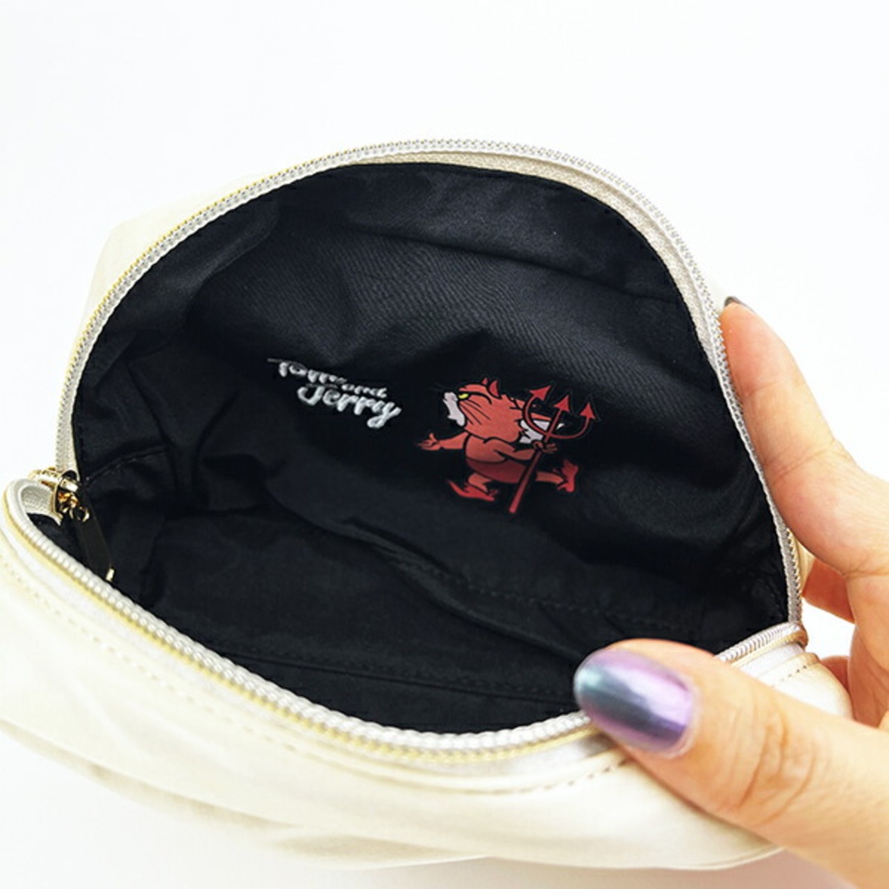 天使と悪魔になったトムとジェリーのリバーシブルポーチです♪裏表でカラーとデザインが違うので好きな時に裏返してお使いいただけます◎柔らかいポリエステル素材なのでバッグの中でかさばらない!ガジェットを入れたりアクセサリーやコスメなどの小物を入れるのに便利◎気分によって天使にしたり悪魔にしても可愛いですよ〜♪