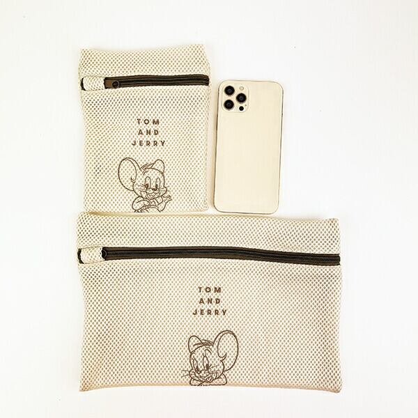 たくさん入る大きめポーチにメッシュポーチ2点がセットになったトムとジェリーのトラベルポーチセットです♪旅行時の衣服収納などにおすすめ☆サイズ違いのメッシュポーチにはハンカチや靴下など細かいものを分けるのに便利◎メッシュポーチは洗えるので洗濯ネットとしても使用可能!【サイズ】ポーチ(M):W270×H190mm、ポーチ(S):W150×H190mm