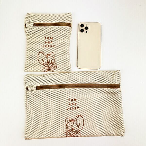 たくさん入る大きめポーチにメッシュポーチ2点がセットになったトムとジェリーのトラベルポーチセットです♪旅行時の衣服収納などにおすすめ☆サイズ違いのメッシュポーチにはハンカチや靴下など細かいものを分けるのに便利◎メッシュポーチは洗えるので洗濯ネットとしても使用可能!【サイズ】ポーチ(M):W270×H190mm、ポーチ(S):W150×H190mm