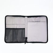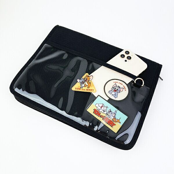 ラベルステッカー風のデザインガジェットケースです♪マウスや充電コードなどの小物も一緒に収納できるポケット付き◎外側のPVCもポケットになっていて、PCやスマートフォンやタブレットなどを収納可能◎見せポケットとしての使用もおすす☆。Dカンにはストラップやチャームなどをつけて自分好みにカスタマイズしてみませんか♪