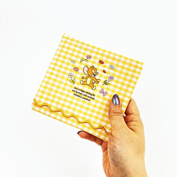 トムとジェリーの背面にポケットティッシュが収納できる便利なポーチです。スナップボタンで前が開き、おくすりや絆創膏などの小物を入れるのにぴったり☆なみなみのラインがアクセントになっていて、爽やかなギンガムチェックの生地がとってもキュート♪トムとジェリーの周りに舞っているお花が華やかでかわいらしいデザインなので持っているだけでハッピーになっちゃいそうです♪