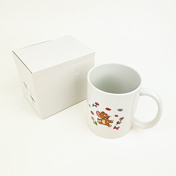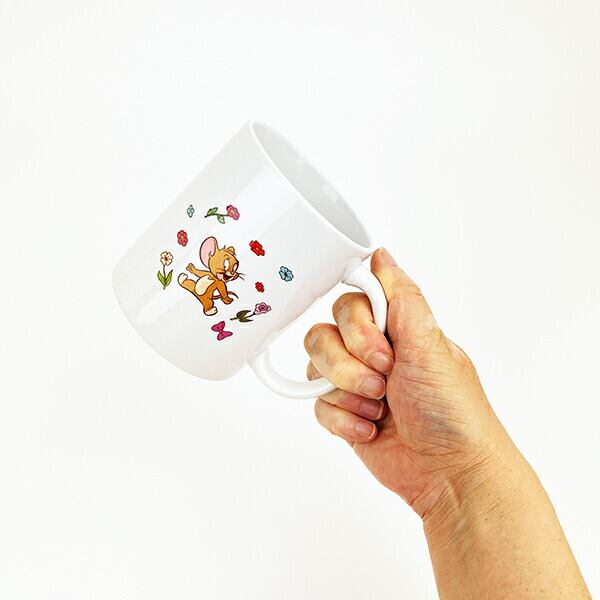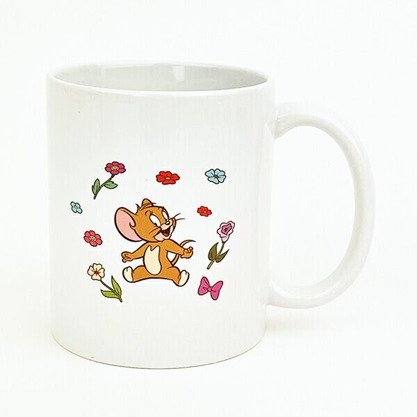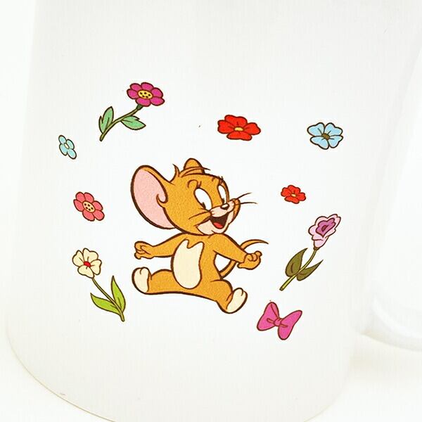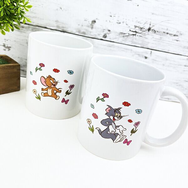 トムとジェリーの周りに舞っているお花が華やかでかわいらしいデザインのマグカップです♪裏はお花とロゴがプリントされたシンプルで使いやすい♪おうちや職場でお好きな飲み物を入れてリラックスしたひとときを楽しみましょう☆電子レンジ使用可◎※オーブン、直火不可、食洗機、乾燥機使用不可!【容量:310ml】