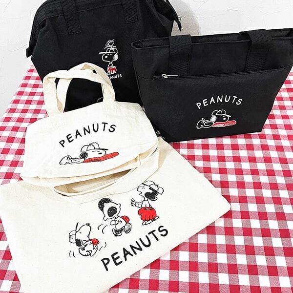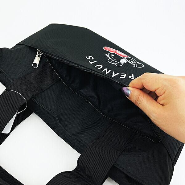 スヌーピーのポケット付きアルミランチバッグです、表面にファスナー付きポケットがあって便利☆保冷剤を入れるメッシュポケット付きなのでランチのお供にぴったりです♪もちろん少量のお買い物にも◎