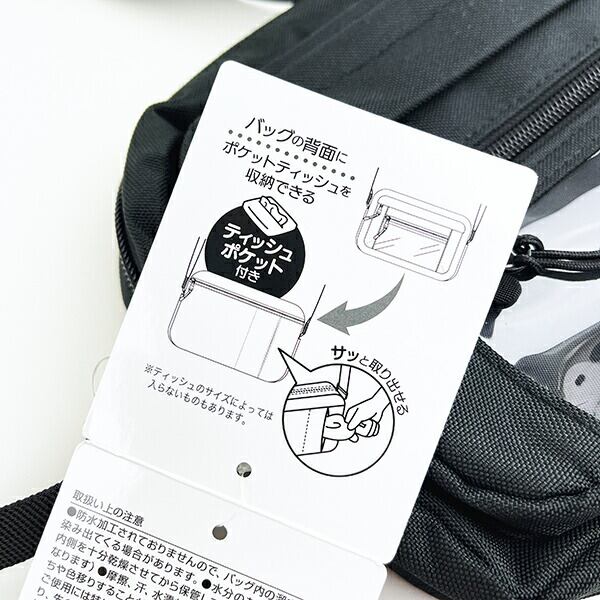 旅行やお散歩などに便利なサンリオのショルダーバッグです♪おでかけに必要最低限の持ち物が入って便利◎バッグの背面にポケットティッシュを収納できるティッシュポケット付き。※ティッシュのサイズによっては入らないものもあります。※ショルダーベルトは長さ調節可能♪肩からかければ両手が空いて楽々♪さりげなくクロミちゃんがいて可愛いですよ〜♪【ベルトの長さ:最長123cm】