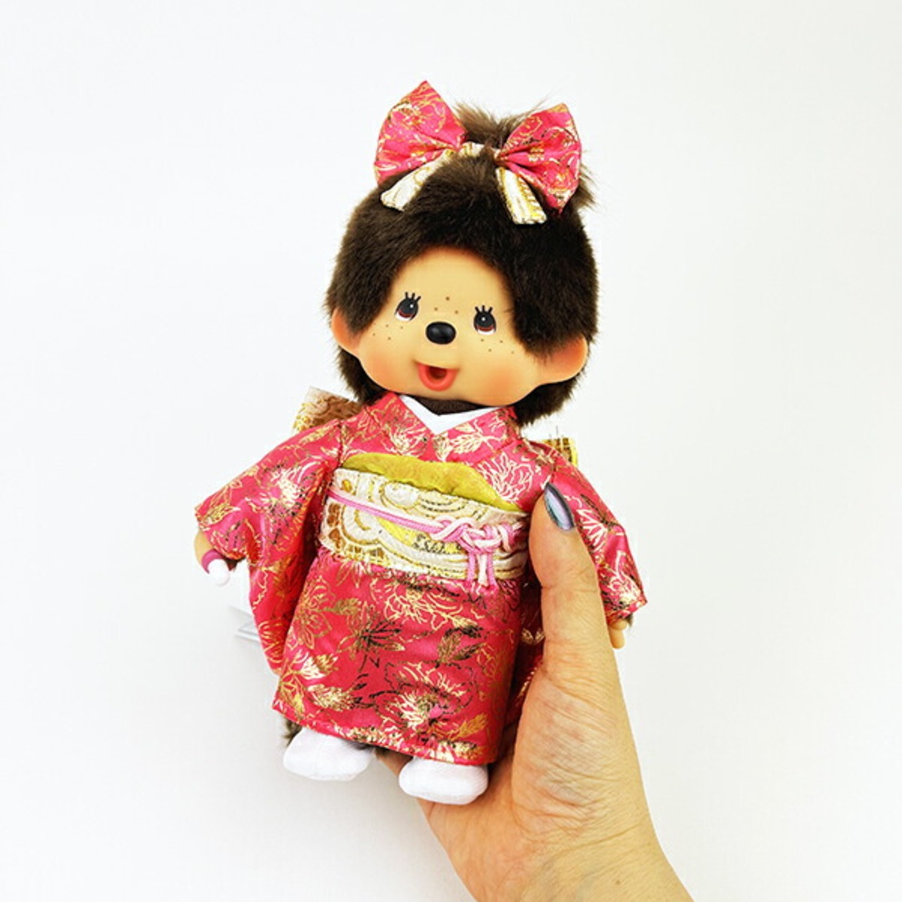 凛々しく、華やかに、晴着姿の自立タイプモンチッチ(女の子)です。リアルなコスチュームでお祝いの席などにぴったり☆海外の方へのプレゼントにもおすすめです♪
