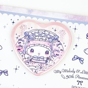 マイメロディ&キキララ 50th×DOLLY MIXの可愛いハート缶バッジです。キラキラしていてとってもキュートなのでバッグなどに付ければ可愛さMAX♪可愛い物が好きな方におすすめのアイテムです♪