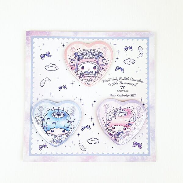 サンリオ マイメロディ&キキララ 50th×DOLLY MIX ハート缶バッジ3個セット Sanrio 日本製