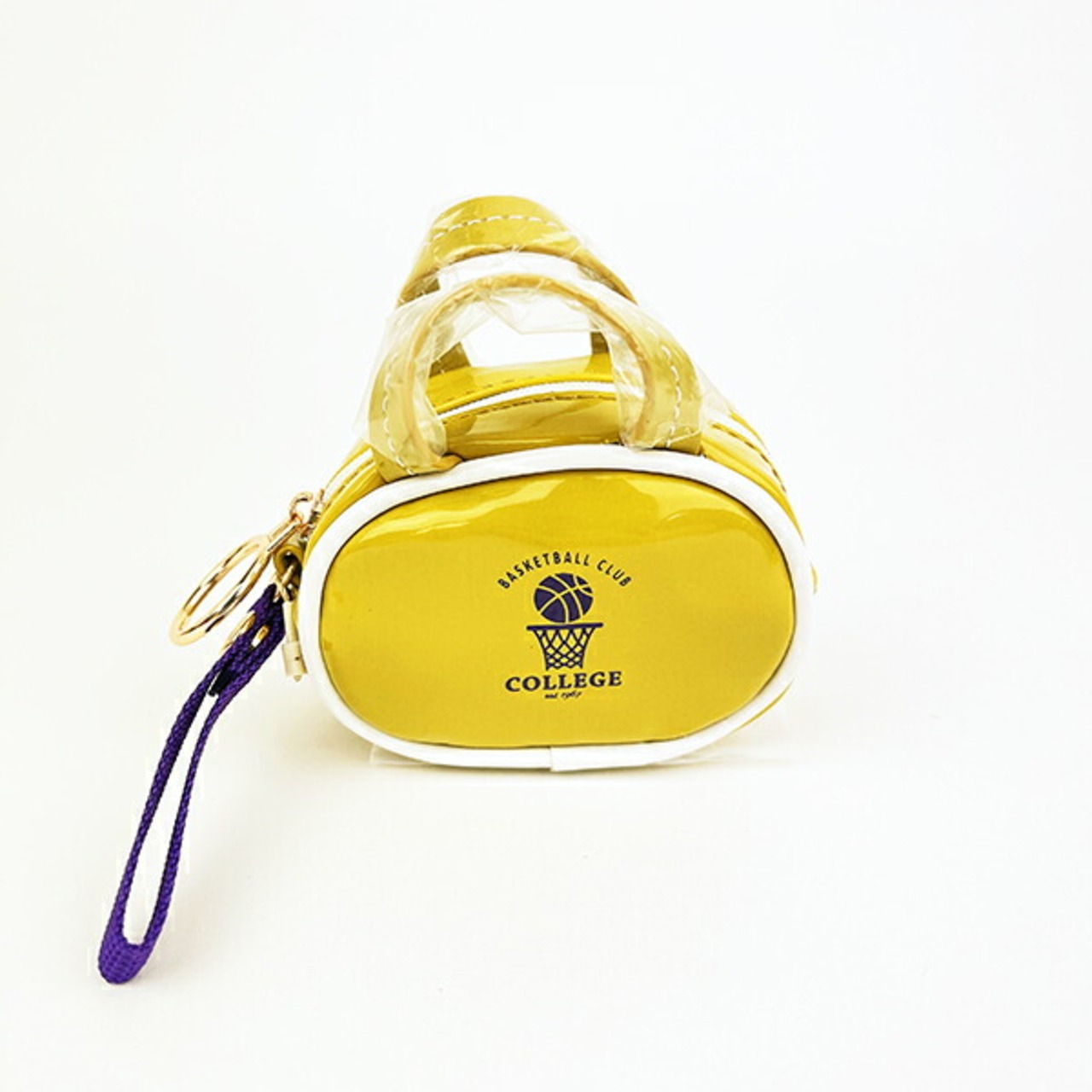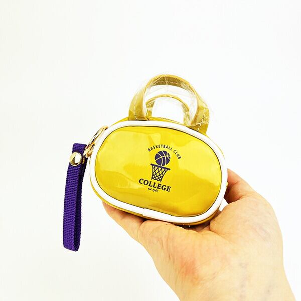 架空のスポーツクラブをイメージしたミニバッグ型チャームです。プリントとテープの配色がアクセントに♪ビビットなエナメル素材×白ラインが可愛い☆お手持ちのぬいに持たせて使用するのも◎バスケ好きの方へのちょっとしたギフトにもおすすめです☆彡