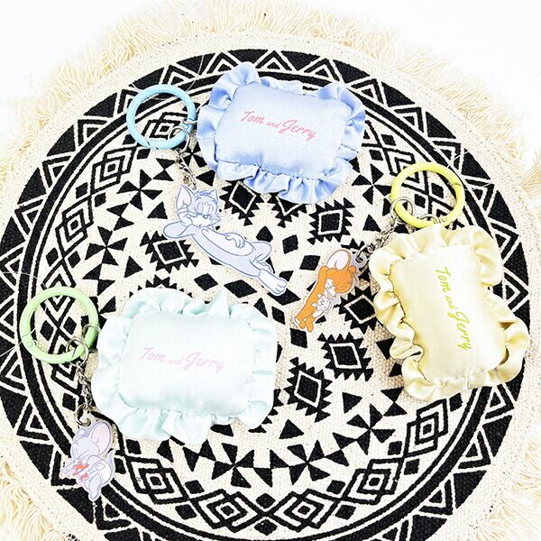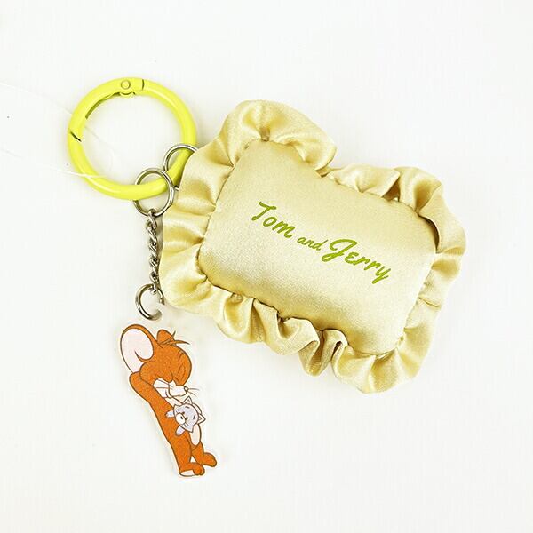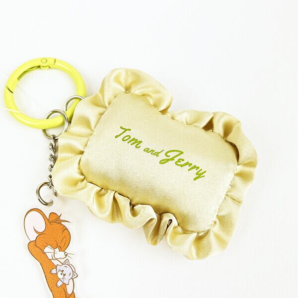 トムとジェリー(ジェリー)のおひるねのワンシーンのような可愛いチャームです。ミニチュアのようなピロー型ミニクッションがキュート♪金具部分はカラビナ仕様になっていて、艶やかな光沢がおしゃれなのでバッグなどのアクセントにもなっちゃいます☆彡