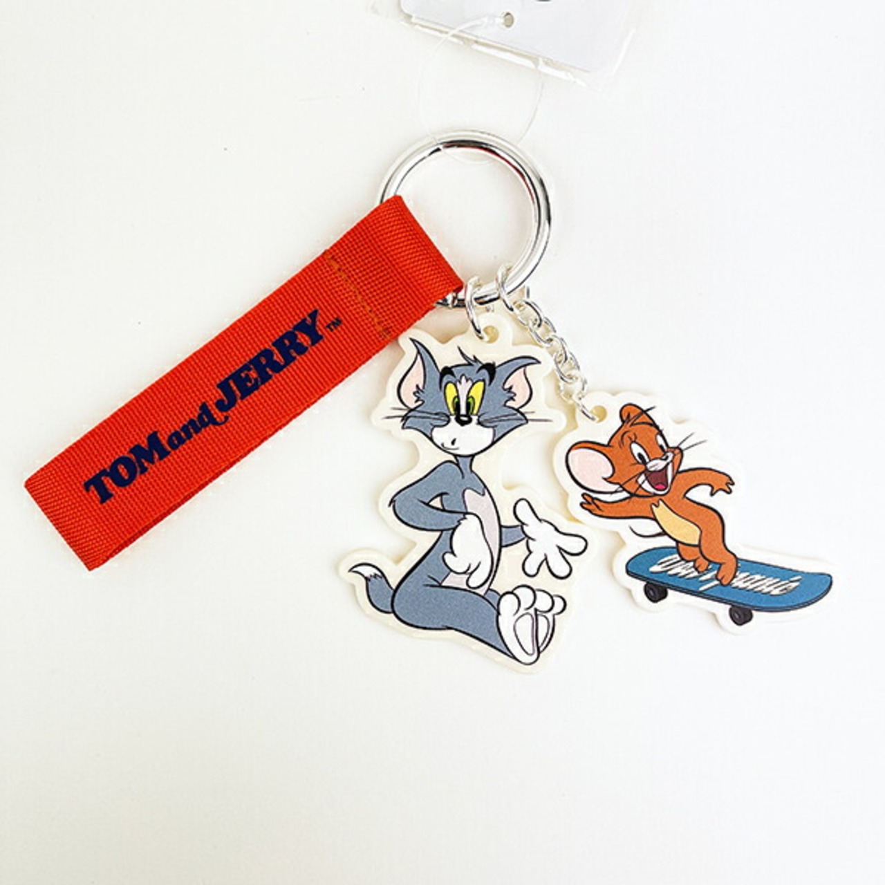 トムとジェリーのスケートボードやバスケを楽しむトムとジェリーのスポーティーなチャームです。ロゴ入りのカラーテープがポイント☆バッグにつけやすい丸カラビナで、お好きなチャームを追加してオリジナルのカスタマイズも楽しめます♪可愛いデザインなのでバッグなどのアクセントにもなっちゃいます☆彡【サイズ】ロゴテープ:約9cm、トム:6.6cm×4.9cm×0.3cm、ジェリー:5.7cm×4.2cm×0.3cm