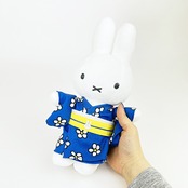 絵本『うさこちゃんのおたんじょうび』で人気の青色の着物姿がキュートなミッフィーのぬいぐるみです。お座りポーズもできるのでインテリアとしても◎帯紐にもミッフィーがいてとっても可愛いです♪
