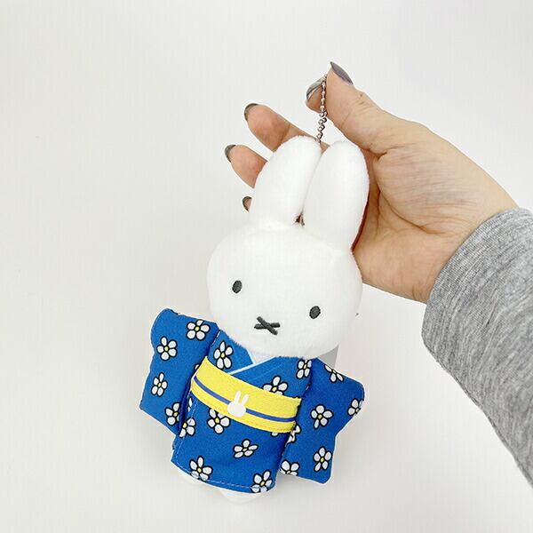 絵本『うさこちゃんのおたんじょうび』で人気の青色の着物姿がキュートなミッフィーのマスコットキーチェーンです。キーホルダーとしても◎帯紐にもミッフィーがいてとっても可愛いです♪