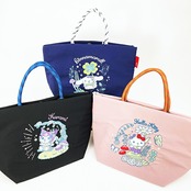 ハローキティのロマンチックな刺繍がかわいいトートバッグです。普段使いにちょうどよいサイズの「デリ」。長財布、スマホ、ボトル、エコバッグなど、必要なモノがひと通り収まり便利◎広めのマチなので、お弁当箱も収納可能です!口元はマグネットボタン付きも嬉しいポイント☆バッグの中で迷子になりがちな小物の収納に便利です♪※洗濯の際はネットに入れて弱水流で洗ってください。