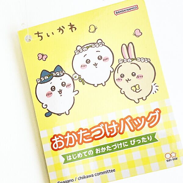 ちいかわのおかたづけバッグです。中には便利なポケット付きなのでお片付けもしやすい☆お子様にもぴったり♪内側の生地にも可愛い柄入りなのがポイントです☆