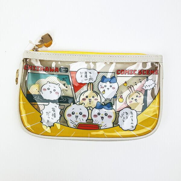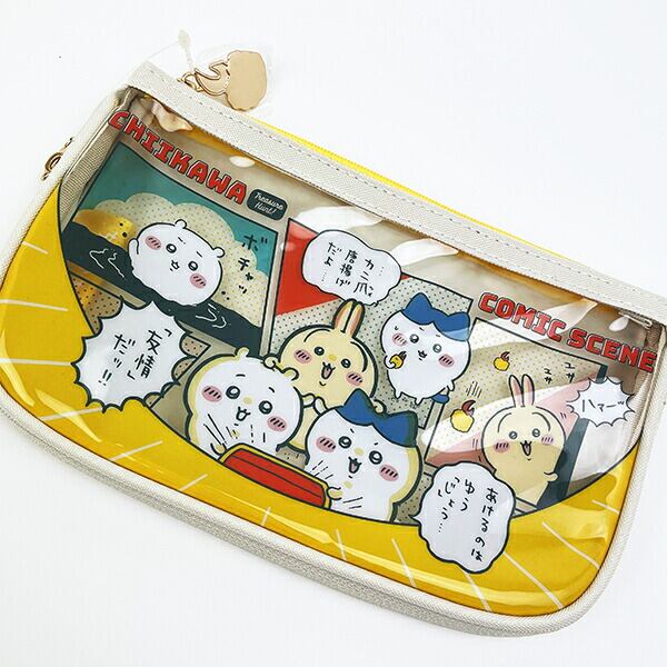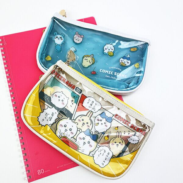 コミックシーンをテーマにしたちいかわの漫画のコマやセリフ付のデザインが可愛いペンケースクリアフラットです。サイドファスナーを開けるとマチが広がるので機能性抜群☆爽やかなカラーリングでお宝さがしの冒険やプールのようなフルーツポンチなど夏休みのようなストーリーをメインに描かれたシリーズでとってもキュート♪ちいかわ好きには嬉しいデザインかも☆ぜひ同シリーズのお好きなアイテムを揃えてみてください♪