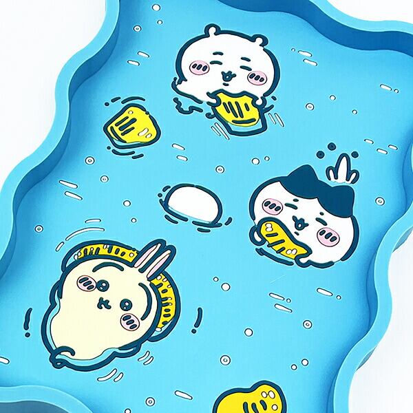 ちいかわの可愛いラバートレーです。小物収納に便利なラバー製のトレーです!ペンやクリップなどをかわいく収納できちゃいます☆爽やかなカラーリングでお宝さがしの冒険やプールのようなフルーツポンチなど夏休みのようなストーリーをメインに描かれたシリーズでとってもキュート♪ちいかわ好きには嬉しいデザインかも☆ぜひ同シリーズのお好きなアイテムを揃えてみてください♪