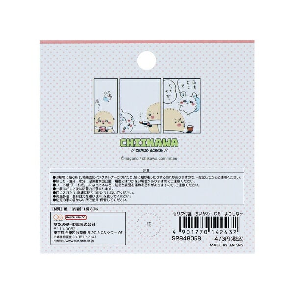 ちいかわ好きには嬉しい作中のシーンを再現したセリフ付箋です。作中のセリフの吹き出し形なので、ちいかわ好きの方ならこのセリフは…と思ってしまう面白い付箋♪空白にメッセージを書いたり、そのまま使えたりしちゃいます☆あなたの好きなセリフはあるかな?30枚セットなのでたくさん使えて便利です♪