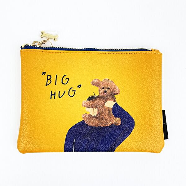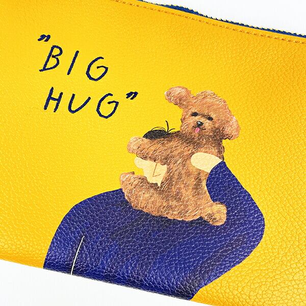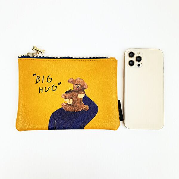 犬を題材にしたPOPでアンニュイなアートが特徴的なイラストレーター『erikurin』とのコラボシリーズのフラットポーチです。シボのある合皮にプリントと刺繍で表現したシンプルながらもインパクト大!コスメやバッグ内の小物をまとめられるのにぴったりなサイズ感が◎