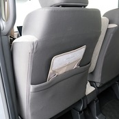 淡いベージュやグレーなどを基調としたカー用品です。どんなインテリアにもに合い車種を選びません♪こちらはヘッドレストに付けられるマルチポケットです。小物類をまとめて収納できるので車内をスッキリ保てます!!家で使っても◎カワイイミッフィーフェイス柄です!