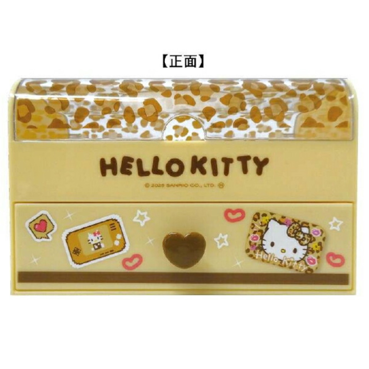 キティちゃんのヒョウ柄シリーズのファンシー小物入れ。ブラウンのヒョウ柄がかわいい!コスメや小物をかわいく収納してくださいね♪