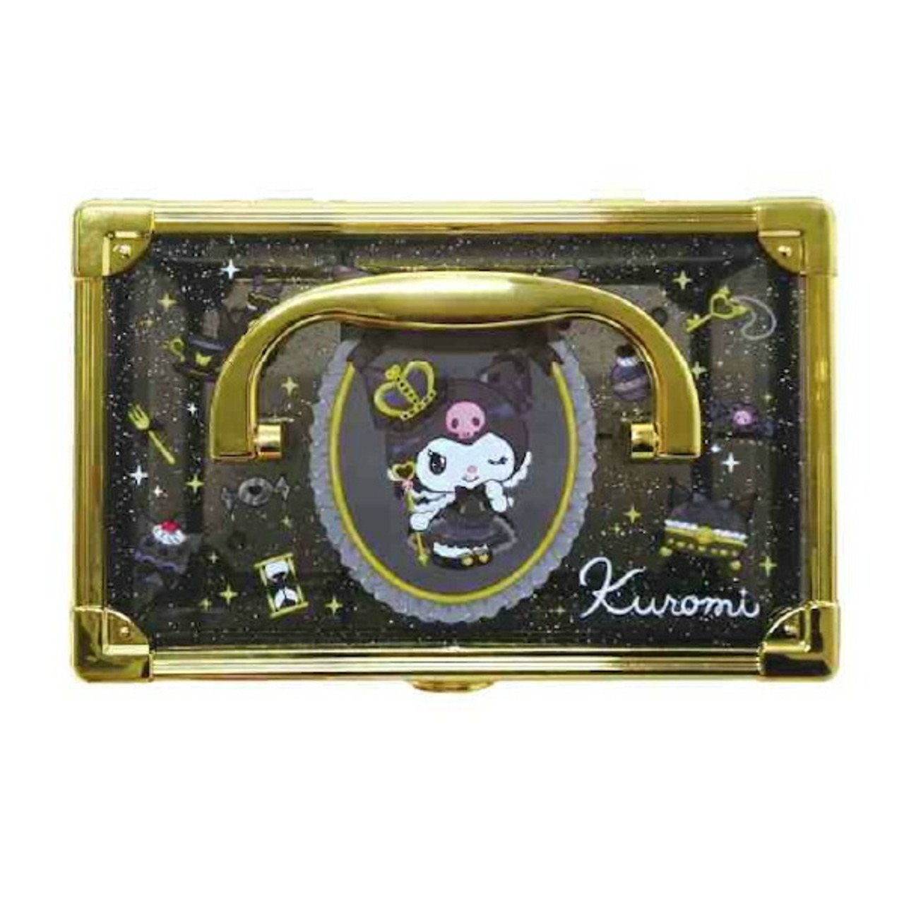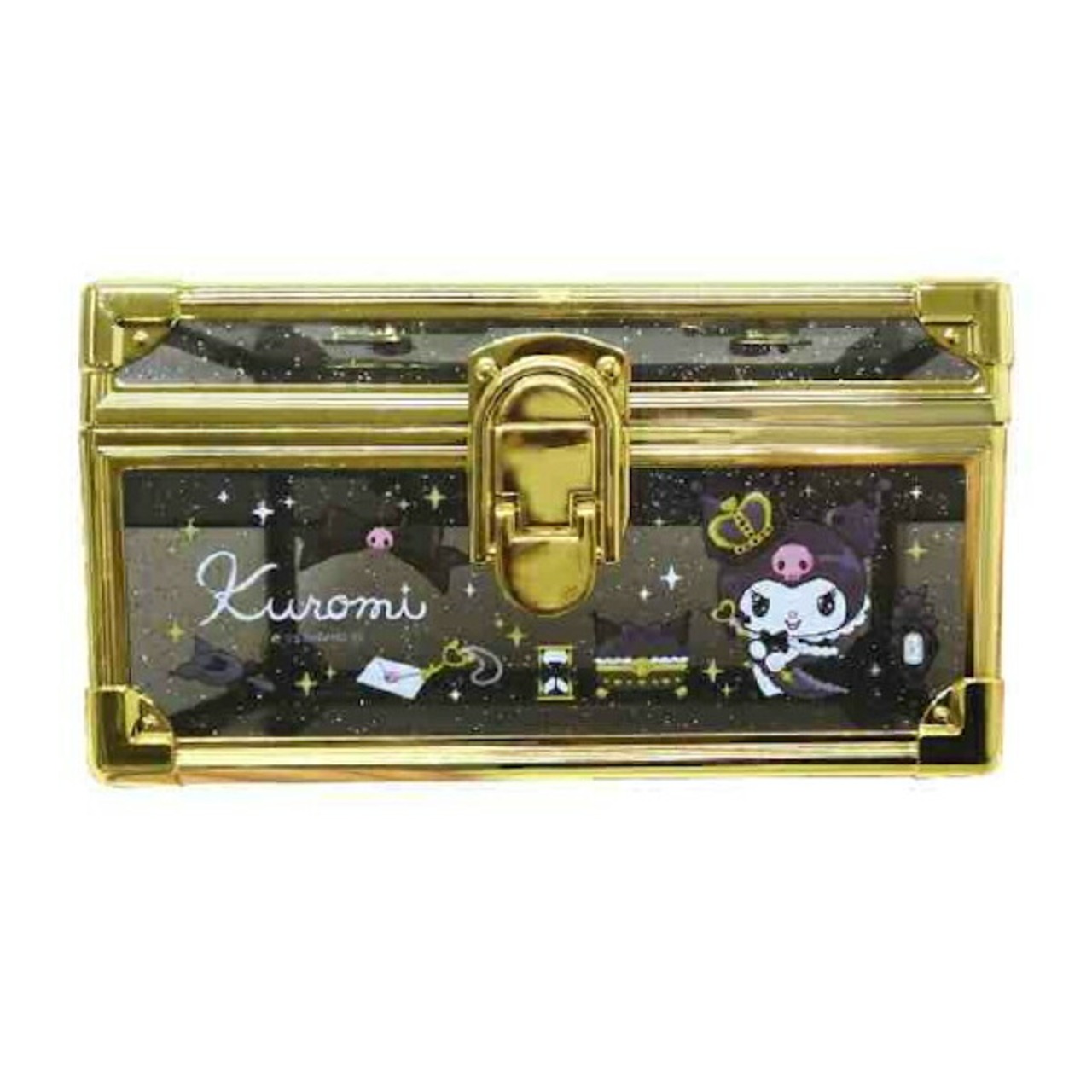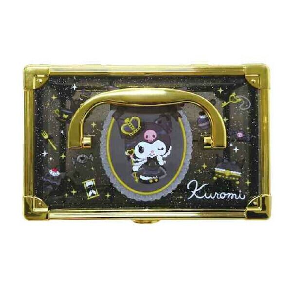 フチはメッキで、面はラメ入りのクリア素材でとってもキラキラカワイイ!!中にはトレーが付いていて二段で収納できます。置いておくだけで可愛くて眺めていたくなっちゃうバニティケースです。小物やメイク道具、文具など色々入れられます♪こちらはクロミちゃんデザインです。