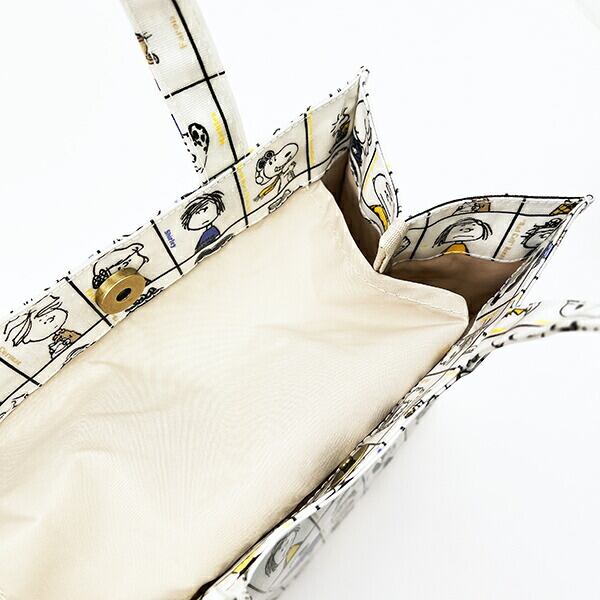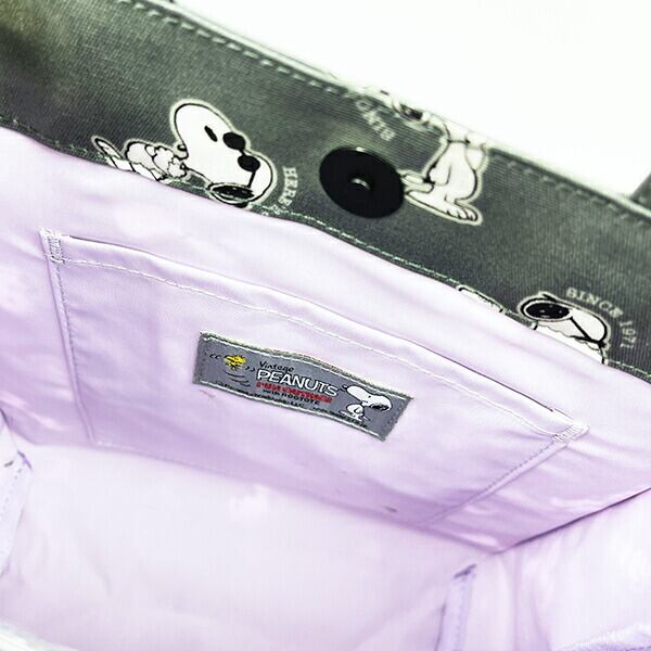 スヌーピー(ジョークール)のちょっとそこまでのお出かけや、わんちゃんのお散歩、ランチトートなどメインにもサブにもなる使い勝手の良さが魅力の「スクエア」のトートバッグです。内側にポケットが付いていて便利◎艶感のあるラミネート加工は、汚れや水滴もサッと拭き取れるので毎日のおでかけに大活躍すること間違いなしです♪