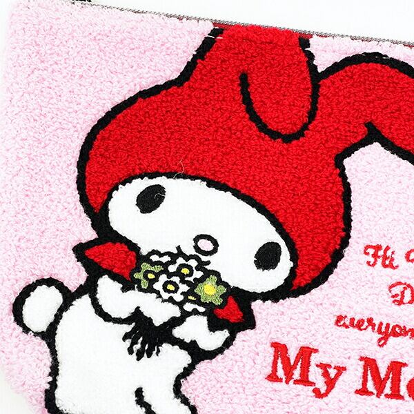 マイメロディのサガラポーチです。サガラ刺繍は一本の糸をかぎ状の針ですくいあげながら縫う手法。毛糸をつかったふわふわとした感触の高級な立体感のあるデザインが可愛いです♪メイク用品やお菓子、小物など入れるのにぴったりなのでバッグの中の収納に便利☆少し大きめでしっかりしているので、お子様のおむつなどを数枚入れるのにも◎バッグに入れておくだけでも可愛いのでおすすめです♪