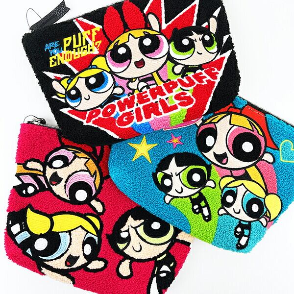 パワーパフガールズのサガラポーチです。サガラ刺繍は一本の糸をかぎ状の針ですくいあげながら縫う手法。毛糸をつかったふわふわとした感触の高級な立体感のあるデザインが可愛いです♪メイク用品やお菓子、小物など入れるのにぴったりなのでバッグの中の収納に便利☆少し大きめでしっかりしているので、お子様のおむつなどを数枚入れるのにも◎バッグに入れておくだけでも可愛いのでおすすめです♪