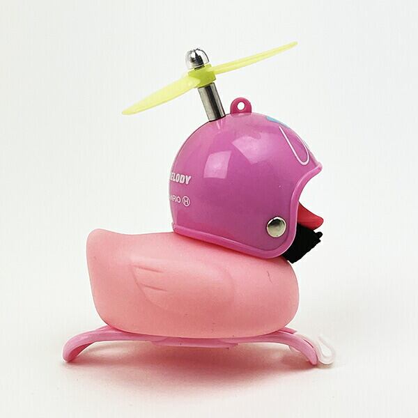 自転車にキュートなアヒルを付けて楽しくサイクリング♪サンリオキャラクターのヘルメットをかぶったアヒルのサイクリングマスコットです。ヘルメットは取り外し可能。おしりを押すと音がなるよ!プロペラは蓄光加工◎