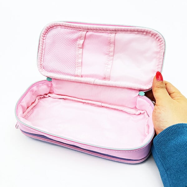 たっぷり入る4面収納ペンケースです。ファスナーポケットやメッシュポケットが付いているので、小物をスッキリ収納できます◎