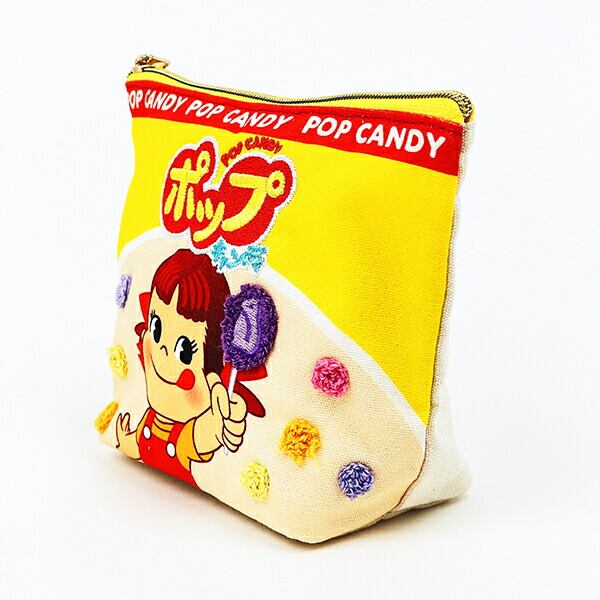 ペコちゃんとポップキャンディがデザインされているバッグです。ふわふわしたキャンディのデザインがポイント♪コンパクトな舟形ポーチなので使いやすい!