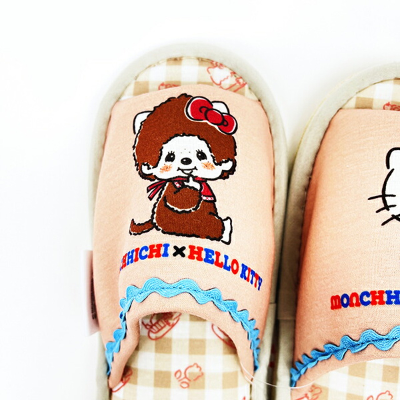 モンチッチとキティちゃんのデザインがカワイイスリッパです。裏は滑りにくい生地で安心♪【サイズ:23〜25cm】