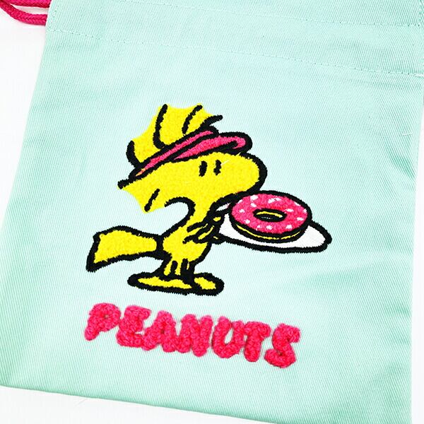 スヌーピー ウッドストック サガラ刺繍巾着 ミントグリーン SNOOPY