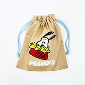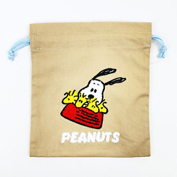 スヌーピー ウッドストック サガラ刺繍巾着 ベージュ SNOOPY