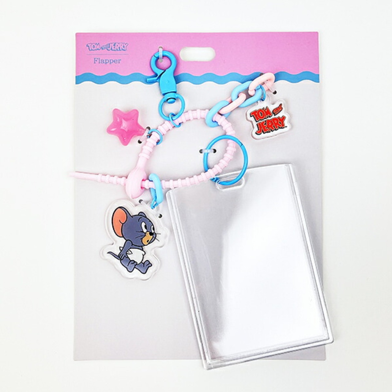 じゃらじゃら感が可愛いトムとジェリーのケースです♪クリアケースには推しの写真やお子様の写真など入れてもOK♪お気に入りのカバンやリュックなどに付けてお出かけしませんか♪【対応サイズ(写真など):91mm×66mm以内】
