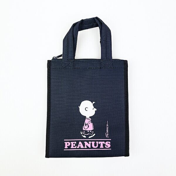 チャーリーブラウンのスクエアランチバッグです。内側はアルミ貼りになっているのがポイント◎バイカラーでオシャレなデザインです☆裏側にはスヌーピーがデザインされています♪ぜひランチのお供にいかがですか?