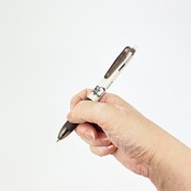 お文具さんとその仲間たちの日常を綴ったのキャラクター『お文具といっしょ』のフリクションの三色ボールペンです♪摩擦熱で筆跡を消去できるのでとっても便利!【仕様】多色ゲルインキボールペン、方式:スライドレバー式、インキ色:黒・赤・青、ボール径…0.5mm