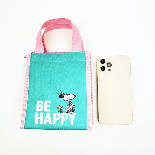 スヌーピー スクエアランチバッグ(SS) BE HAPPY グリーン SNOOPY