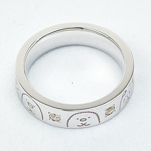 しろくま・ぺんぎん?・とんかつ・ねこ・とかげの順にぎゅっと固まったすみっコたちのシンプルなリングです。十分な厚みを持ったデザインで高級感も漂います☆さりげなく大人が身につけたいシルバージュエリーコレクション☆箱付きなのでプレゼントにもおすすめです♪【サイズ:最大幅 約4.9mm】