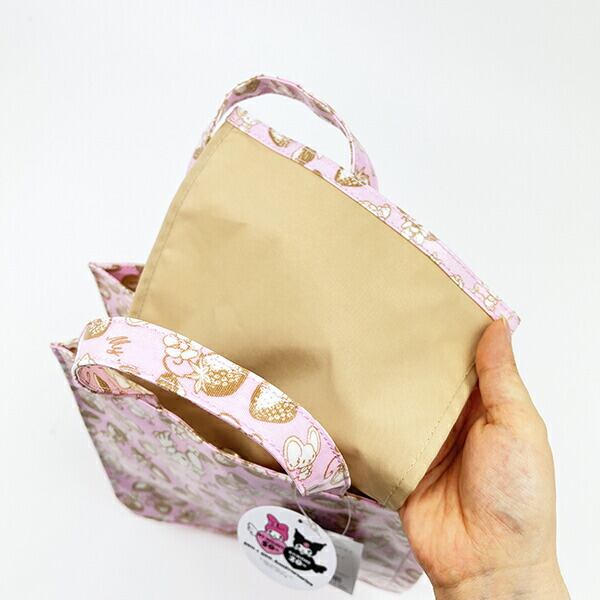 マイメロディのちょっとそこまでのお出かけや、わんちゃんのお散歩、ランチトートなどメインにもサブにもなる使い勝手の良さが魅力の「スクエア」のトートバッグです。内側にポケットが付いていて便利◎艶感のあるラミネート加工は、汚れや水滴もサッと拭き取れるので毎日のおでかけに大活躍すること間違いなしです♪
