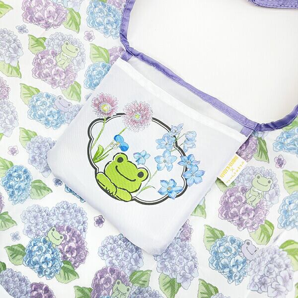 フラワーギフトで人気の日比谷花壇と、かえるのピクルスのコラボのエコバッグです!フローリストによるフラワーイラストが施され、アジサイに紛れたピクルスが♪収納ポケット付きで折りたたみOK◎軽くて持ち歩きにも便利です♪