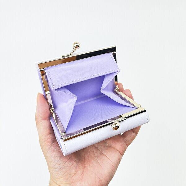 三つ折りタイプで小さなかばんにもスッポリ収まるミニウォレット♪大きく開いて取り出しやすいがまぐちコインケース、カードホルダーなど使いやすも◎リボンのメタルパーツとキャラクターがかわいい♪