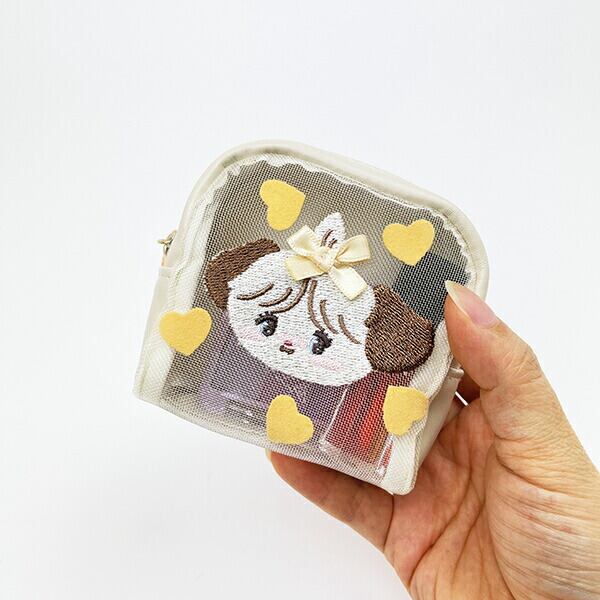 持ち運びに便利なコンパクトサイズのポーチです。メッシュ柄でそれぞれのキャラクター達がリボンをつけてキュート。マチもあり収納力も◎かわいいアイテムで日常を楽しく♪