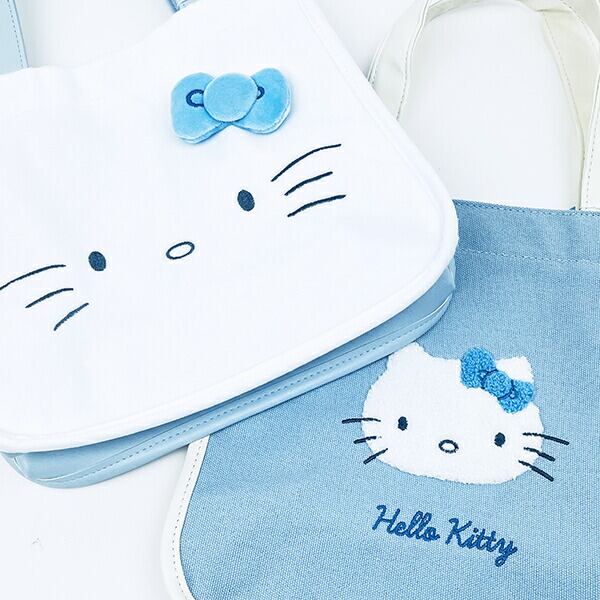 みずいろと白いキティーの色使いがかわいくちょっとしたお出かけに便利なサイズ感のトートバッグ。お弁当バッグにも丁度良いサイズ感です。